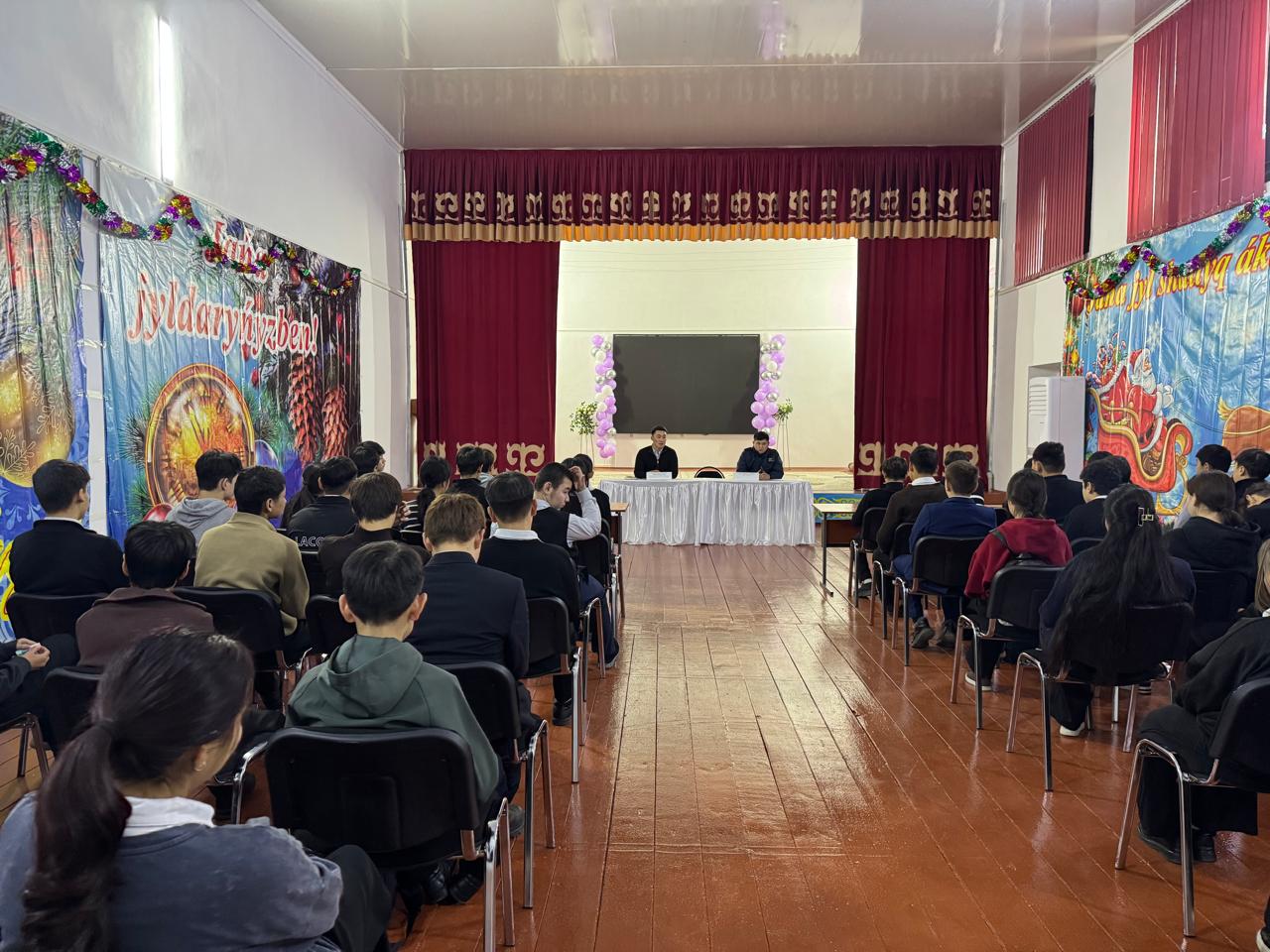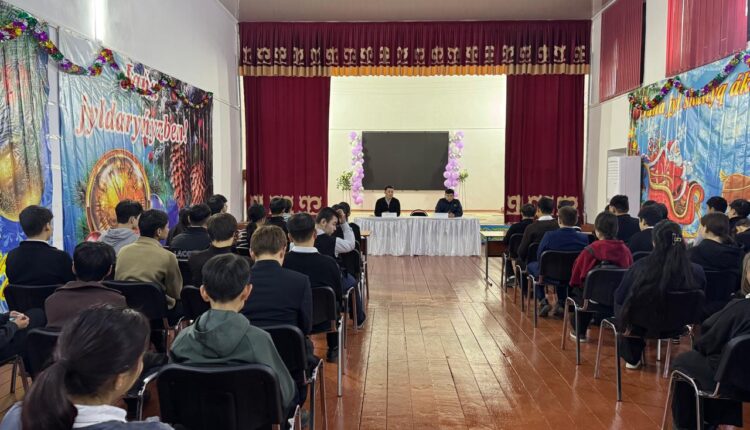 Кездесуге Талас АПБ ЖПҚБ ЮПТ инспекторы, полиция лейтенанты Талғат Шыңғыс Саматұлы қатысып, оқушыларға жасөспірімдер арасындағы құқықбұзушылық түрлері, олардың салдары, әкімшілік және қылмыстық жауапкершілік туралы түсіндірме жұмыстарын жүргізді. Сонымен қатар заң талаптарын сақтау, тәртіп бұзудың алдын алу, зиянды әдеттерден аулақ болу және қауіпсіз мінез-құлық қағидалары жөнінде маңызды ақпараттармен бөлісті.
