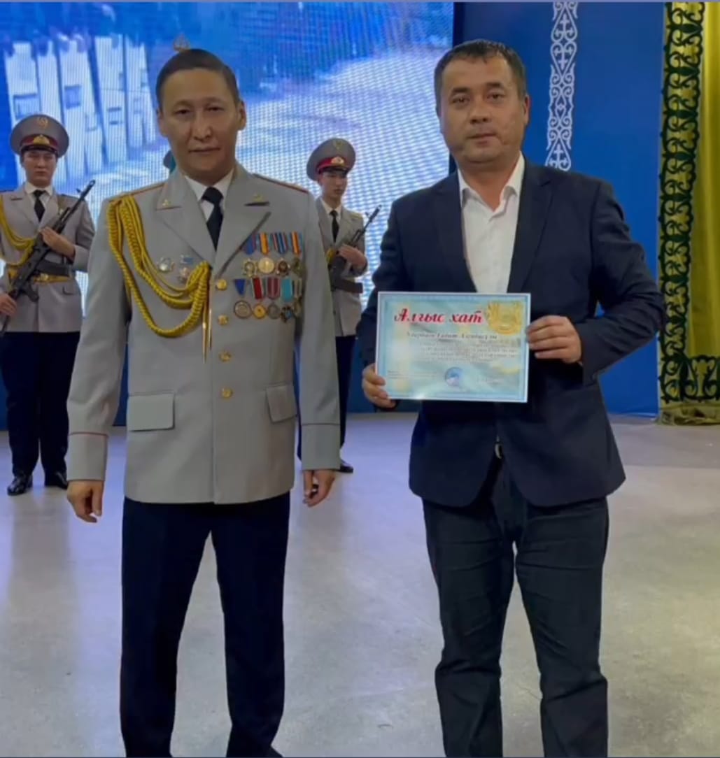 Қ.Ш. Жарылғаповтың алғыс хаты грамотасымен марапатталды.