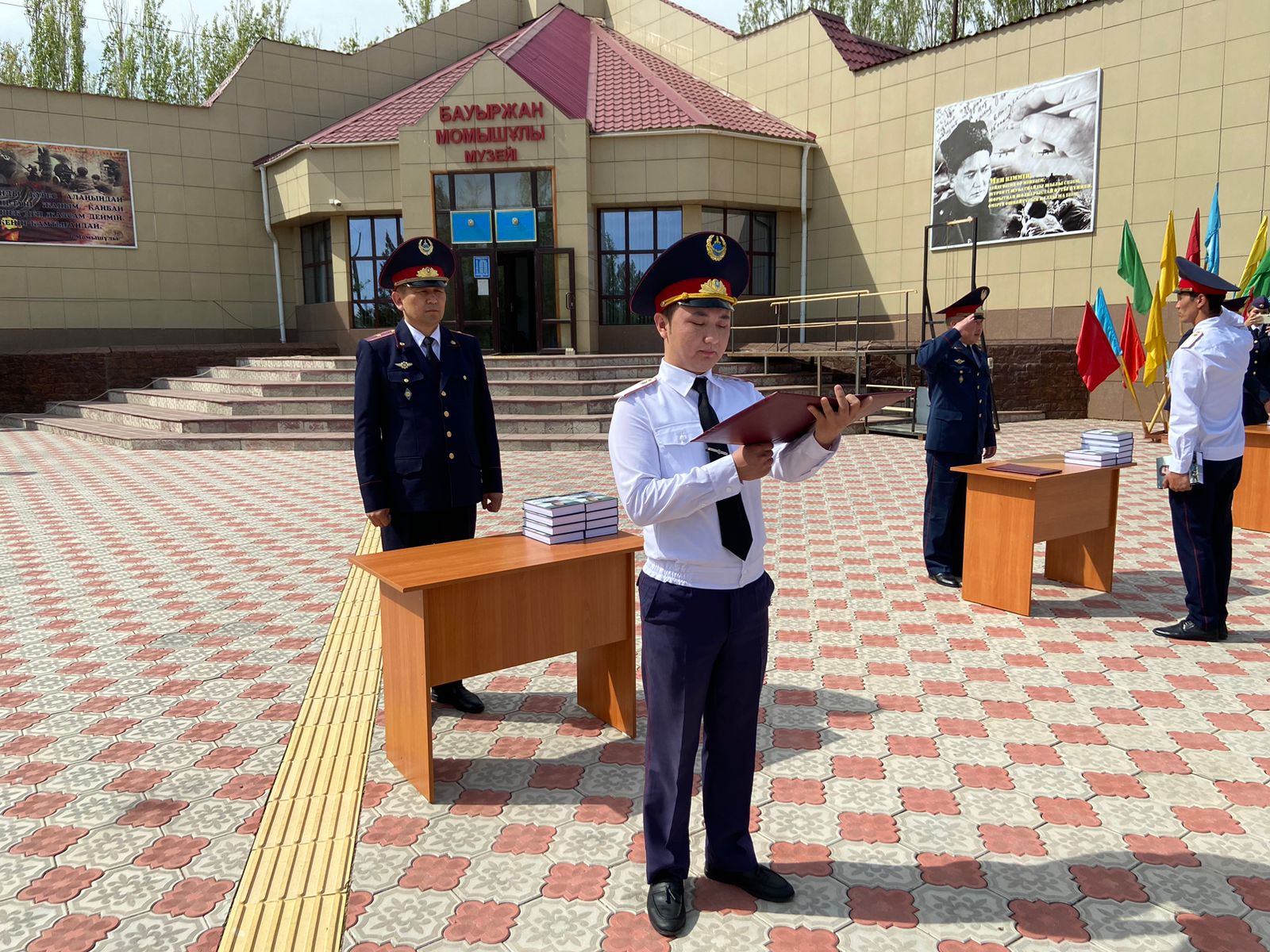 Сондай-ақ шара барысында департамент бастығы Н.Рыспаев сала ардагерлеріне өткен ғасырдың 40-шы жылдары күллі әлем елдеріне миллиондаған тиражбен тараған Александр Бектің “Волоколамск тас жолы” кітабын табыс етті. Айта кетейік, бұл күні ҚАЖ саласында қызмет етуге ниетті болашақ офицерлер салтанатты түрде ант қабылдады. Болашақта олар өңірлік ҚАЖ департаментіне бағынысты түзеу мекемелерінде қызмет етеді.