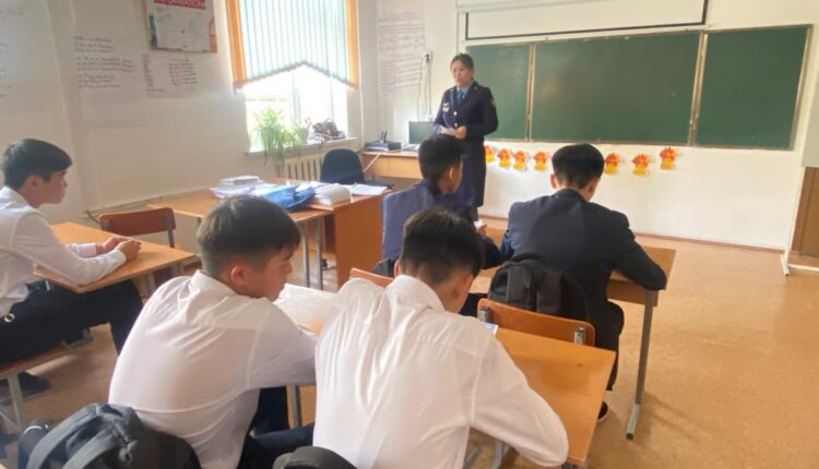 Жамбыл облысы бойынша ҚАЖД №67 мекемесінің тәрбие және кадр жұмысы қызметкерлерімен Жамбыл облысы Ю. Гагарин аудандық орта мектебінің 10-11 сынып оқушыларымен үгіт насихат жұмысы негізінде жиын өткізілді, жиын барысынды болашақ 2024 жас түлектерге ҚР ІІМ Ш.Қабылбаев атындағы Қостанай академиясына оқуға түсудің негізгі шарттары, дене шынықтыру нормалары түсіндіріліп, ҚР Құқық қорғау органдарының қызметкерлері болуға шақырды.