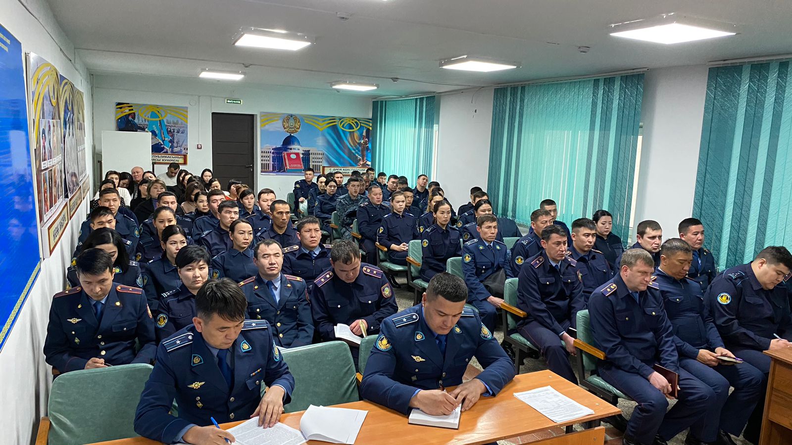 Департамент бастығы Жәнібек Жамалбекұлы мекемеде заң талаптарын қатаң сақталудын қажеттігін баса айтып, қоғам қауіпсіздігін қамтамасыз ету мақсатында жүйелі жұмыс істеуді тапсырды.