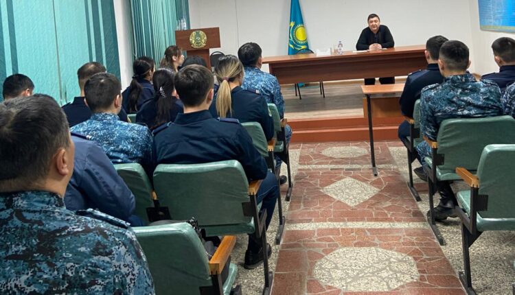 Жамбыл облысы бойынша ҚАЖД №67 мекемесі бастығының орынбасары әділет майоры Марғұлан Берікұлы жеке құрам арасында жаңадан қызметке тағайындалған жас қызметкерлермен Жамбыл облысы бойынша ҚАЖ департаменті ардагерлер кеңесінің төрағасы Оразкельдиев Ақылбек Теңгелбекұлымен кездесу ұйымдастырылды.