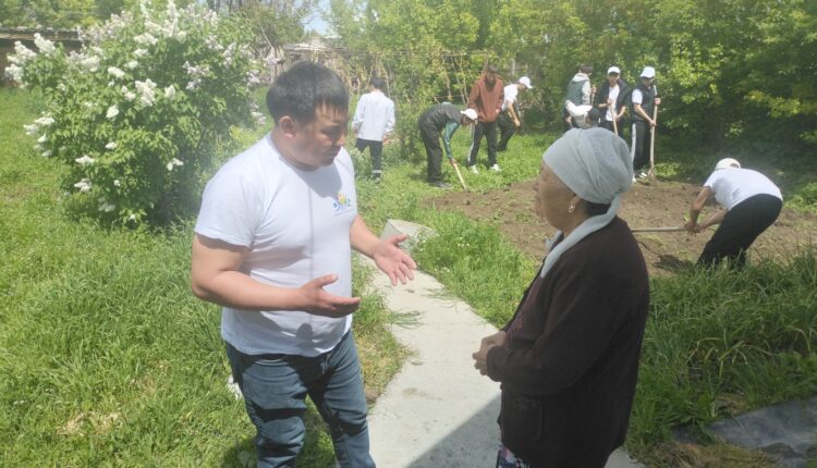 В ходе акции волонтеры посетили дома пожилых людей старше 70 лет в г. Каратау, очистили двор и помогли с домашними делами.