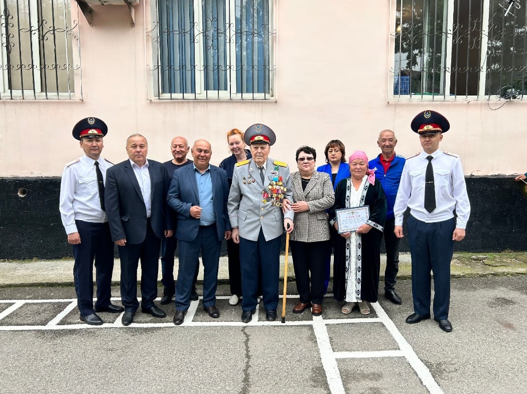 Начальник Линейного отдела полиции на станции Тараз Олег Родякин от имени личного состава поздравил Ивана Федоровича и передал ветерану благодарственное письмо от имени начальника Департамента полиции на транспорте МВД РК полковника полиции Бакытжана Малыбаева.