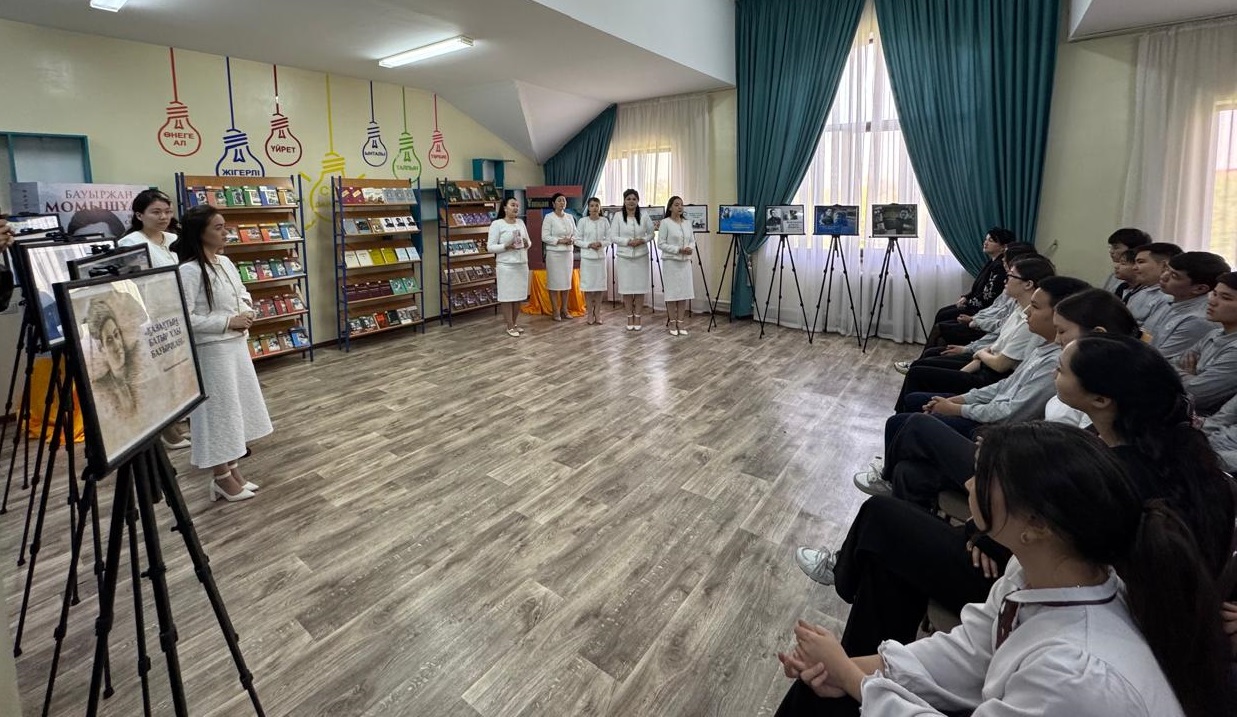 В частности, в научно-интеллектуальной школе-лицее «Келешек-Тараз» г. Тараз прошла передвижная книжная выставка «Тау тұлға, дара тұлға — Бауыржан», посвященная 80-летию Победы и 115-летию Героя Советского Союза, писателя Б. Момышулы, организованная Жамбылской областной универсальной научной библиотекой им. Ш. Уалиханова.