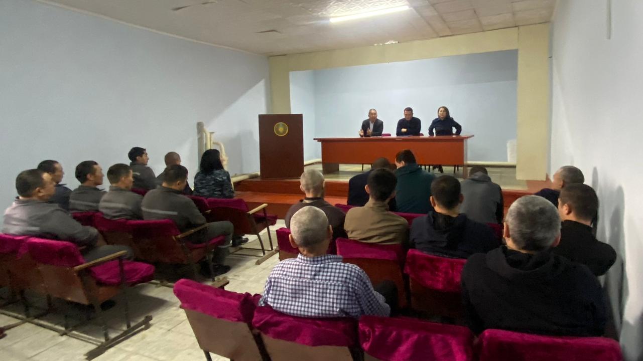 Жамбыл облысы бойынша Қылмыстық- атқару жүйесі департаментіне қарасты №67 мекемесінде Дін істер басқармасы мен теологиялық оңалту тобының аға инспекторы әділет капитаны Нұрлан Кожамкуловтың Шымкент қаласы «Ақниет» ақпараттық насихаттау және оңалту орталығы ҚҚ сарапшысы Тайтелиев Файзулла Тажмұхамедұлы Жамбыл облысы ҚАЖ департаментінің ұйымдастыруымен мекемедегі сотталғандармен топтық«Діни экстремизм мен терроризмнің ықпалынан сақтану» тақырыбыңда топтық кездесу өткізілді.